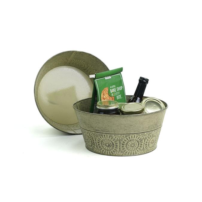 10.25" Round  Tub  Slate Antique Cove Pattern- Oat