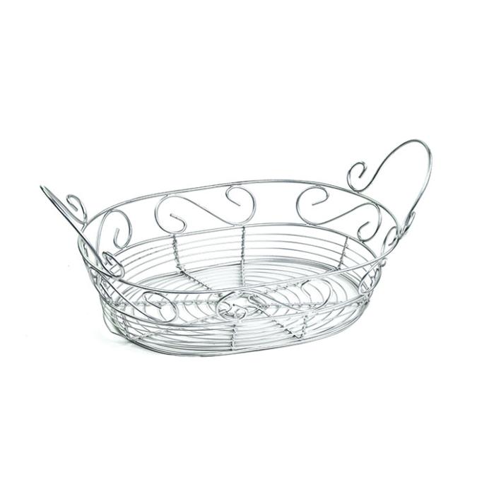 Wire Oval Bowl - Silver Finish Scroll design with side handles.